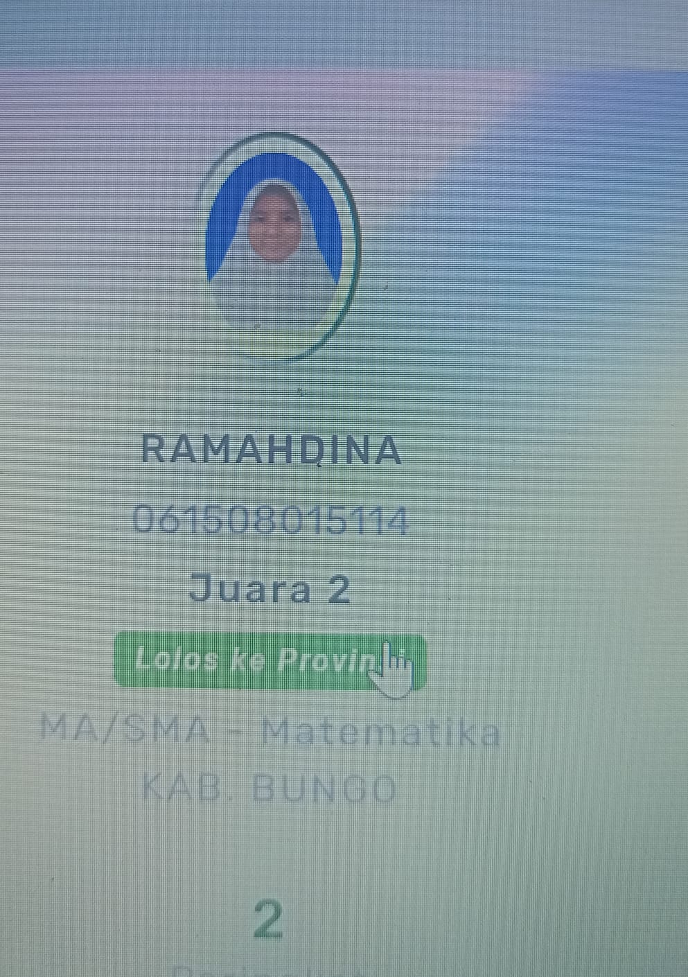 Bungo,8 Juli 2024 siswa-siswa MAN 3 kembali menoreh prestasi dalam ajang Kompetisi Sains Madrasah (KSM) tingkat Kabupaten. Siswa tersebut atas nama Rahmadina pada bidang studi matematika terintegrasi, meraih juara ke-2 dan untuk beregu Sains terpadu berhasil meraih peringkat ke-4.