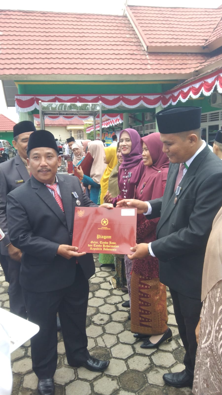 Piagam tanda kehormatan Satya lencana Karya Satya 2025 dari Presiden RI yang secara simbolis diserahkan oleh Kepala Kantor Kementerian Agama Kabupaten Bungo, Kasubbag TU,dan sejumlah Kasi di Kantor Kementerian Agama Kabupaten Bungo. Menurut Kasubbag TU Kantor Kementerian Agama Kabupaten Bungo, tanda kehormatan ini diberikan dengan tujuan menghargai Aparatur Sipil Negara yang telah mendedikasikan diri sepenuhnya kepada negara,setiap kepada Pancasila dan UUD 45 serta bekerja dengan disiplin.