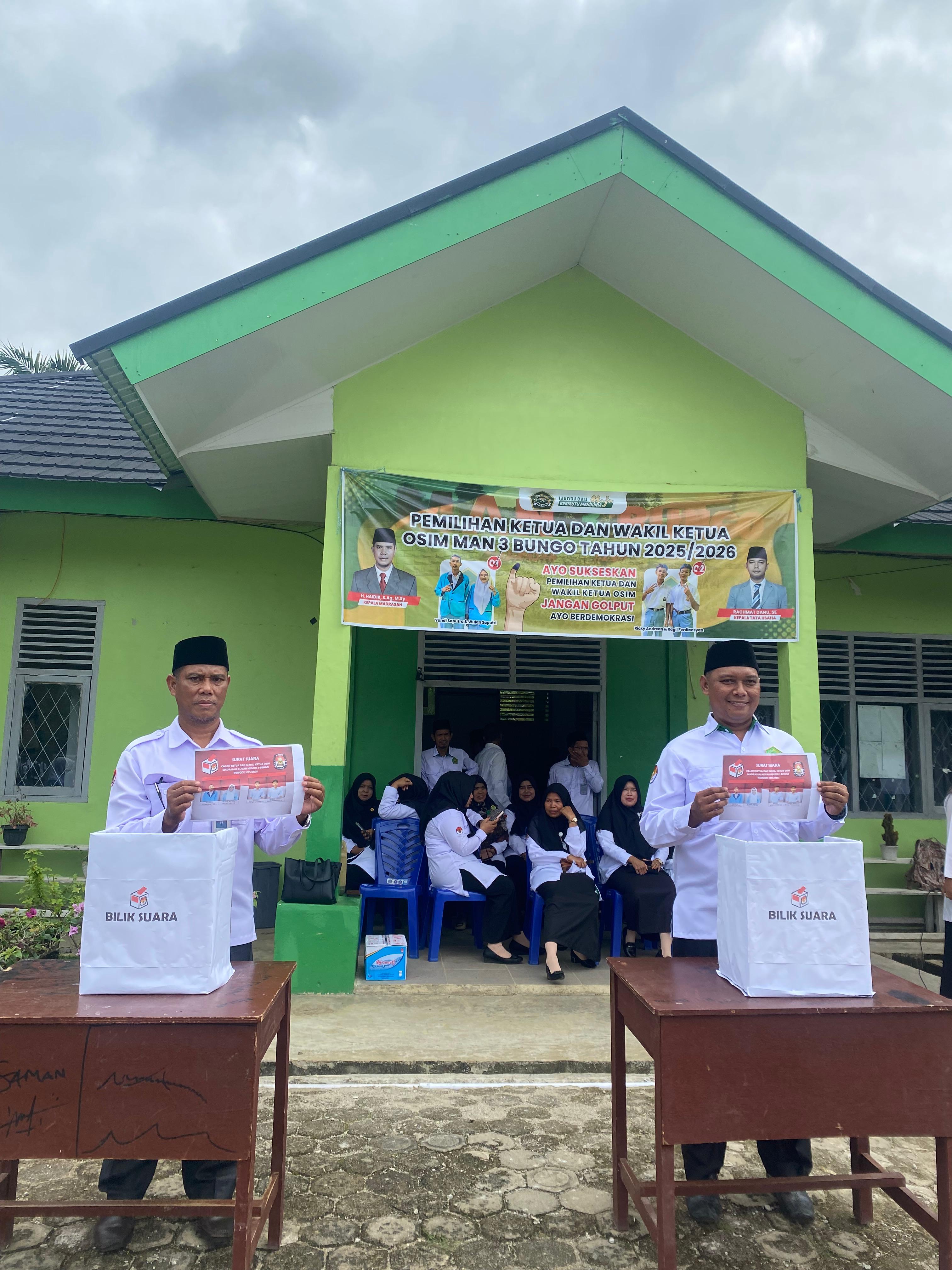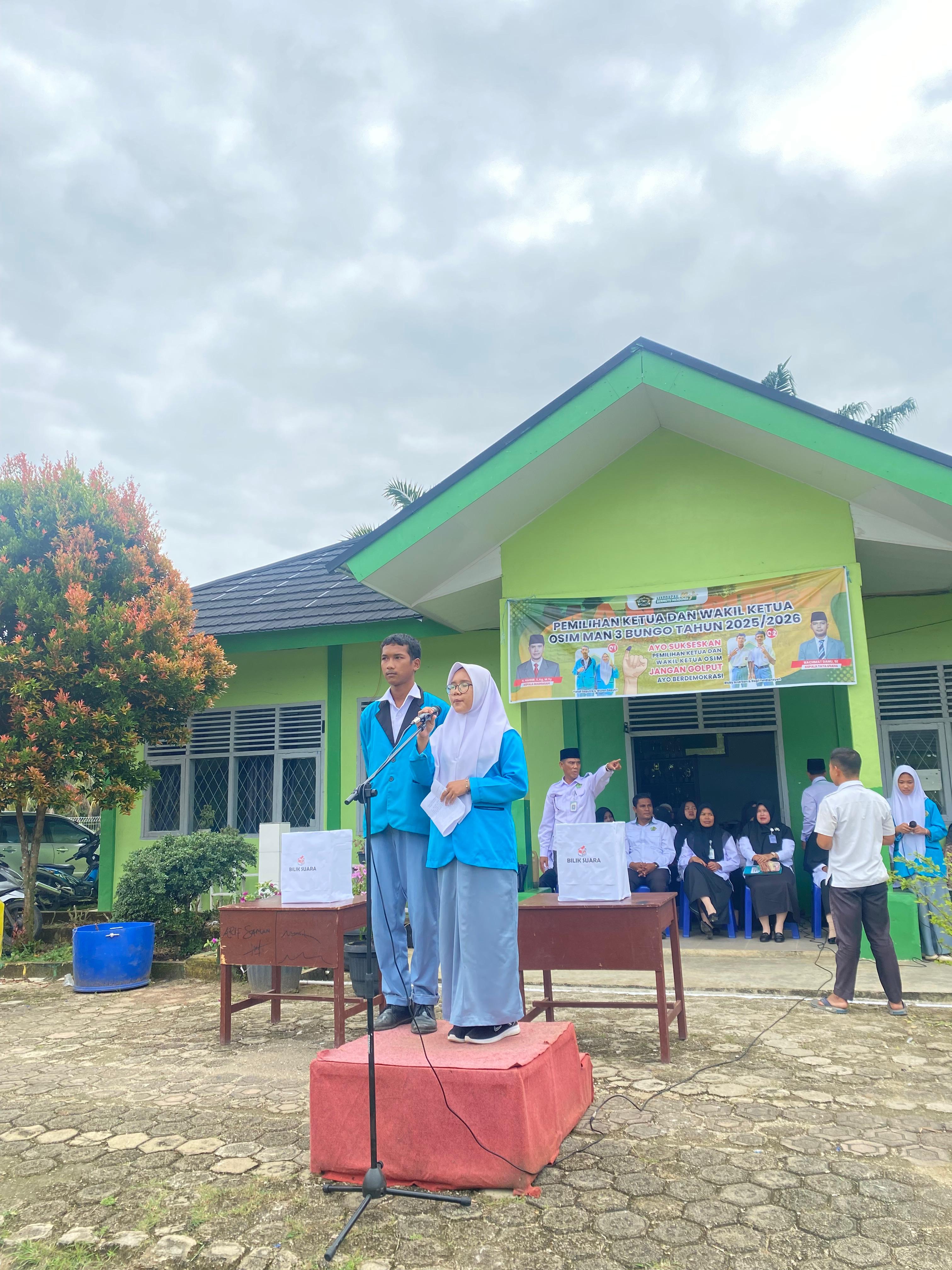 Bungo (MAN 3 Bungo) Senin,10 Februari 2025, seluruh keluarga besar MAN 3 Bungo menyelenggarakan pesta demokrasi pemilihan ketua dan wakil ketua OSIM MAN 3 Bungo untuk masa bakti 2025