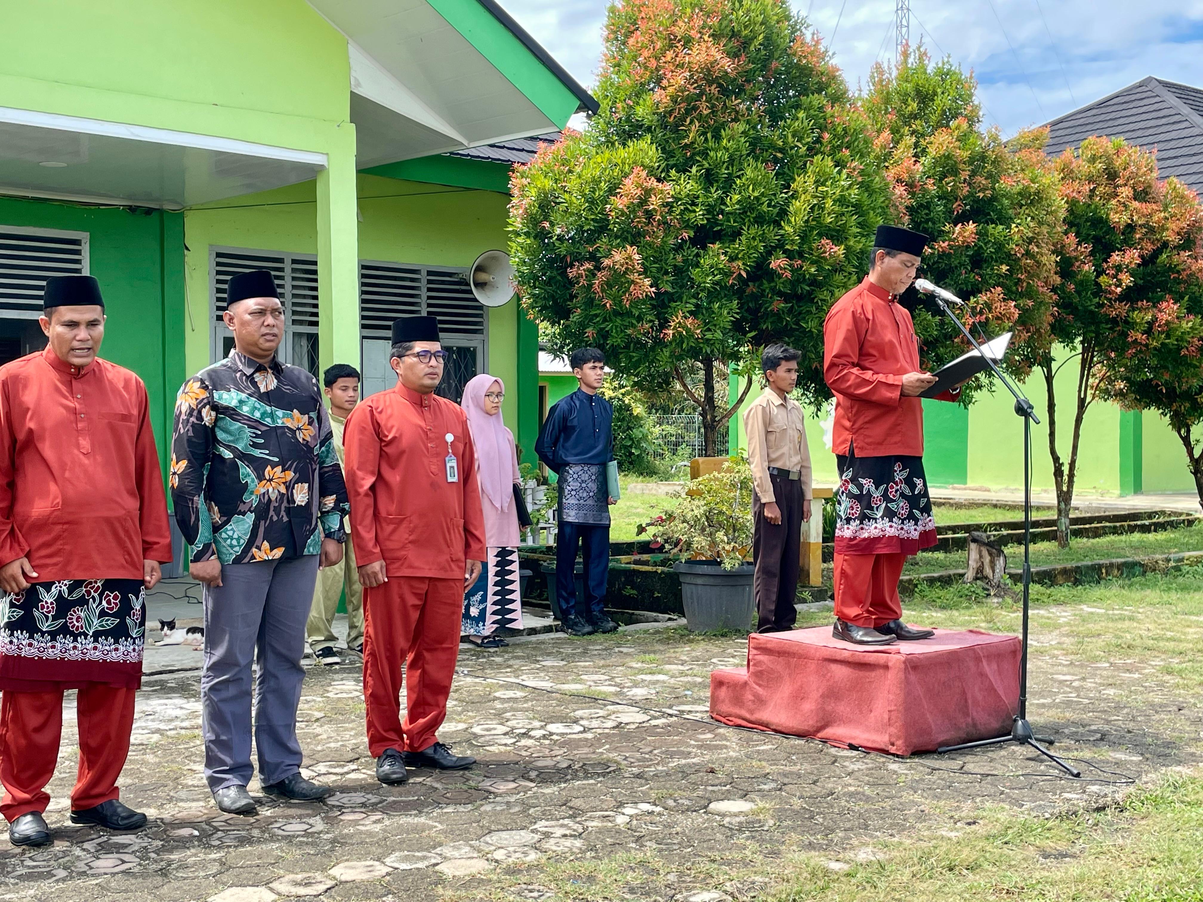 Bertindak sebagai pembina upacara adalah Kepala MAN 3 Bungo, Bapak H. Haidir, S.Ag., M.Sy. Dalam amanatnya, beliau membacakan sambutan resmi dari Direktur Jenderal Pendidikan Dasar dan Menengah (Medikdasmen) Republik Indonesia. Sambutan tersebut menekankan pentingnya semangat merdeka belajar, pelestarian budaya lokal, serta penguatan karakter generasi muda melalui pendidikan yang inklusif dan berkeadaban.