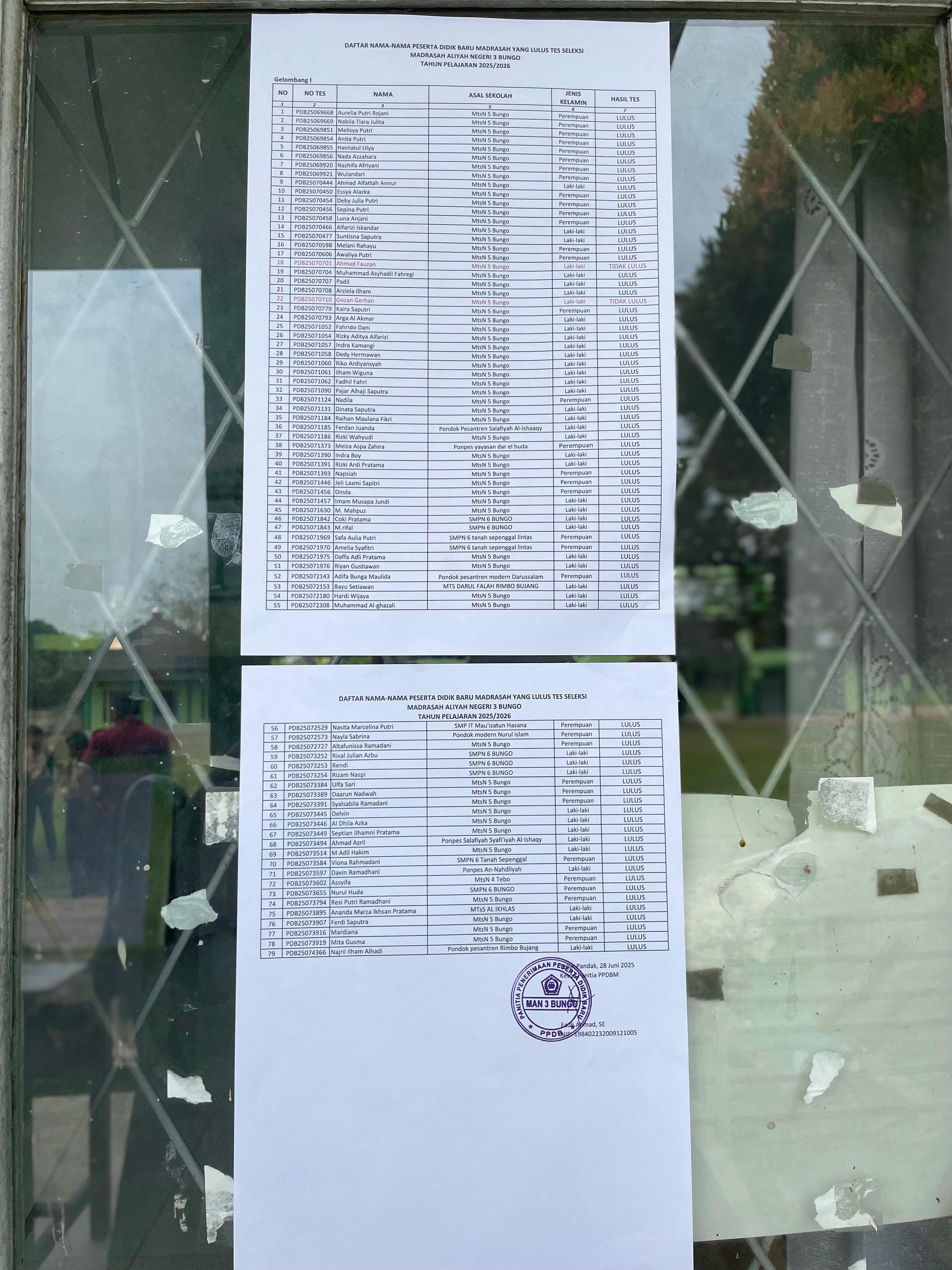 Sejak pagi hari, tampak calon siswa dan siswi beserta orang tua mereka mulai berdatangan ke lingkungan MAN 3 Bungo untuk melihat langsung daftar kelulusan yang ditempel di papan informasi. Suasana dipenuhi antusiasme dan harapan besar dari para peserta yang telah mengikuti rangkaian tes seleksi sebelumnya.