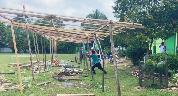 Seluruh ASN bagian tata usaha turut serta dalam kegiatan gotong royong ini. Mereka membersihkan halaman sekolah, stand pameran yang dipenuhi kayu, serta sejumlah fasilitas umum lainnya. Kerja sama ini dilakukan agar lingkungan sekolah kembali bersih dan siap digunakan untuk aktivitas belajar mengajar seperti biasanya.