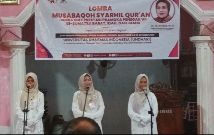 Darmasraya – Peserta Musabaqah Syarhil Qur’an (MSQ) dari MAN 3 Bungo berhasil tampil sangat memukau dalam salah satu cabang lomba keagamaan yang digelar pada kegiatan Lomba Giat Prestasi Pramuka Penegak (LGPPP) di Universitas Dharmasraya (Undhari).