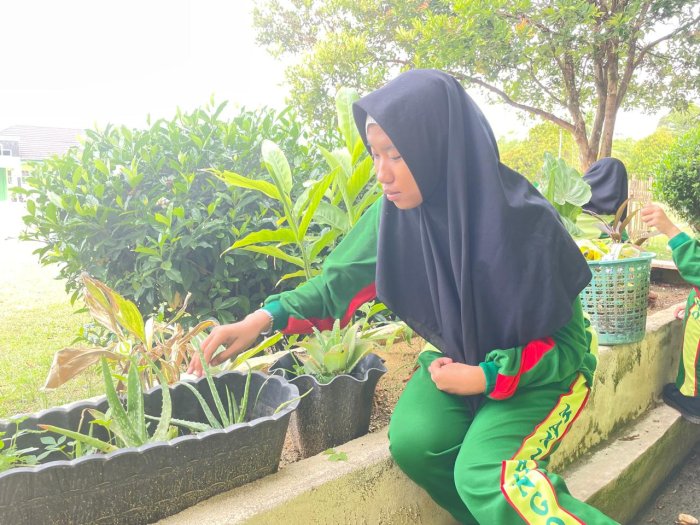 Siswi spesial di sebuah madrasah akiyah negeri menunjukkan kepedulian tinggi terhadap kebersihan lingkungan sekolah. Mereka secara rutin terlibat dalam kegiatan membersihkan ruang kelas, halaman, dan fasilitas umum madrasah bersama teman-teman lainnya.