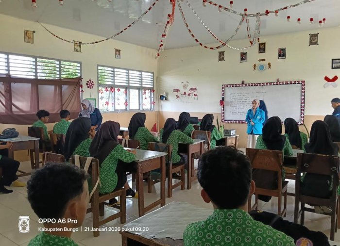 Teluk Pandak, 22 Januari 2026 — Dosen dari Universitas Islam Negeri (UIN) Sultan Thaha Saifuddin Jambi melaksanakan kegiatan sosialisasi pendidikan tinggi secara langsung ke ruang kelas di Madrasah Aliyah Negeri (MAN) 3 Bungo, khususnya kepada siswa kelas XII didampingi juga oleh mahasiswi perwakilan terbaiknya.