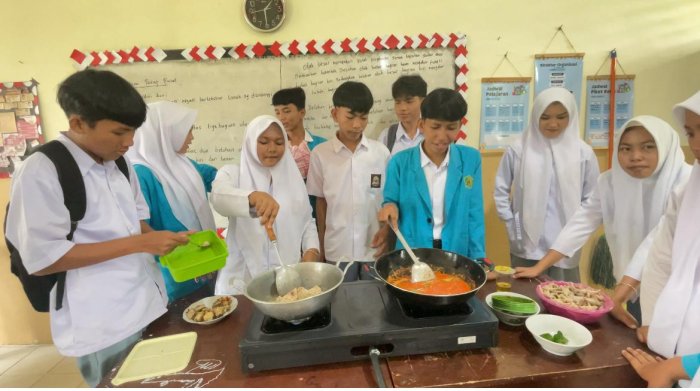 Selama pelaksanaan kegiatan, siswa terlihat antusias dan aktif bekerja sama dalam kelompok. Mereka mempraktikkan tahapan pengolahan makanan mulai dari persiapan bahan, proses memasak, hingga penyajian hasil masakan dengan tetap memperhatikan kebersihan, kerapian, dan keselamatan kerja.