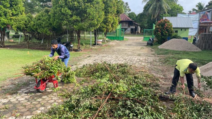 Desa Teluk Pandak – Semangat menjalankan ibadah puasa tidak menjadi hambatan bagi keluarga besar MAN 3 Bungo untuk terus menjaga kebersihan dan kerapian lingkungan madrasah.