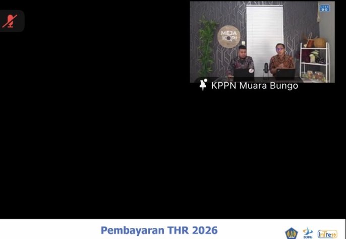 Kantor Pelayanan Perbendaharaan Negara (KPPN) Muara Bungo menggelar pertemuan daring melalui aplikasi Zoom dengan tajuk Meja Kopi Edisi Khusus. Pertemuan ini membahas secara khusus mengenai proses pembayaran Tunjangan Hari Raya (THR) tahun 2026 bagi pegawai negeri, ASN PPPK dan PPNPN.